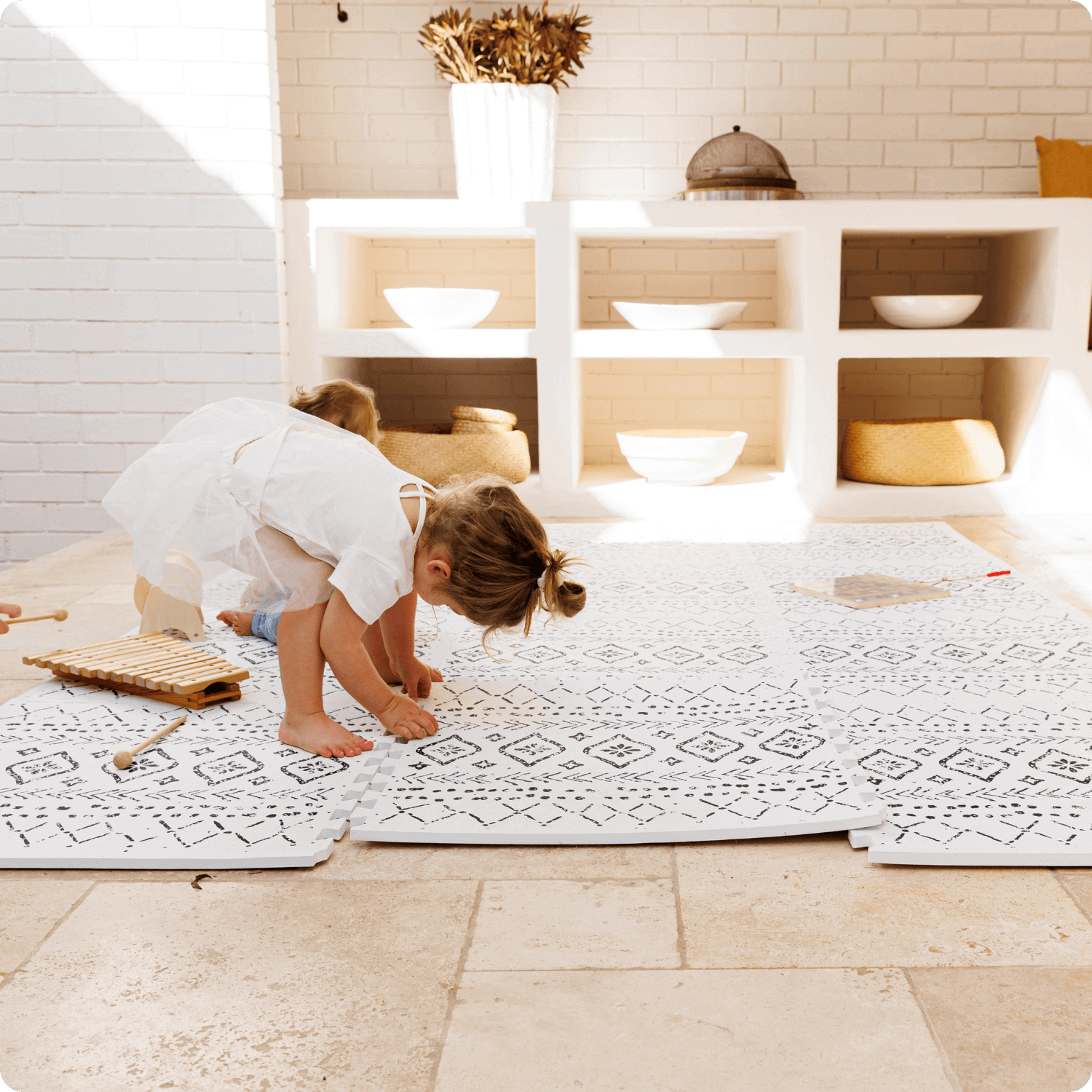 Becoming a parent is often overwhelming. Your home is cluttered with baby gear, and your mind feels just as chaotic. Our playmats are designed to go beyond mere visual appeal. Our vision is that they help you create a home that not only works for your family, but for you. A space where you can feel calm, grounded and authentically yourself.