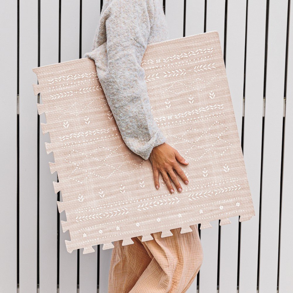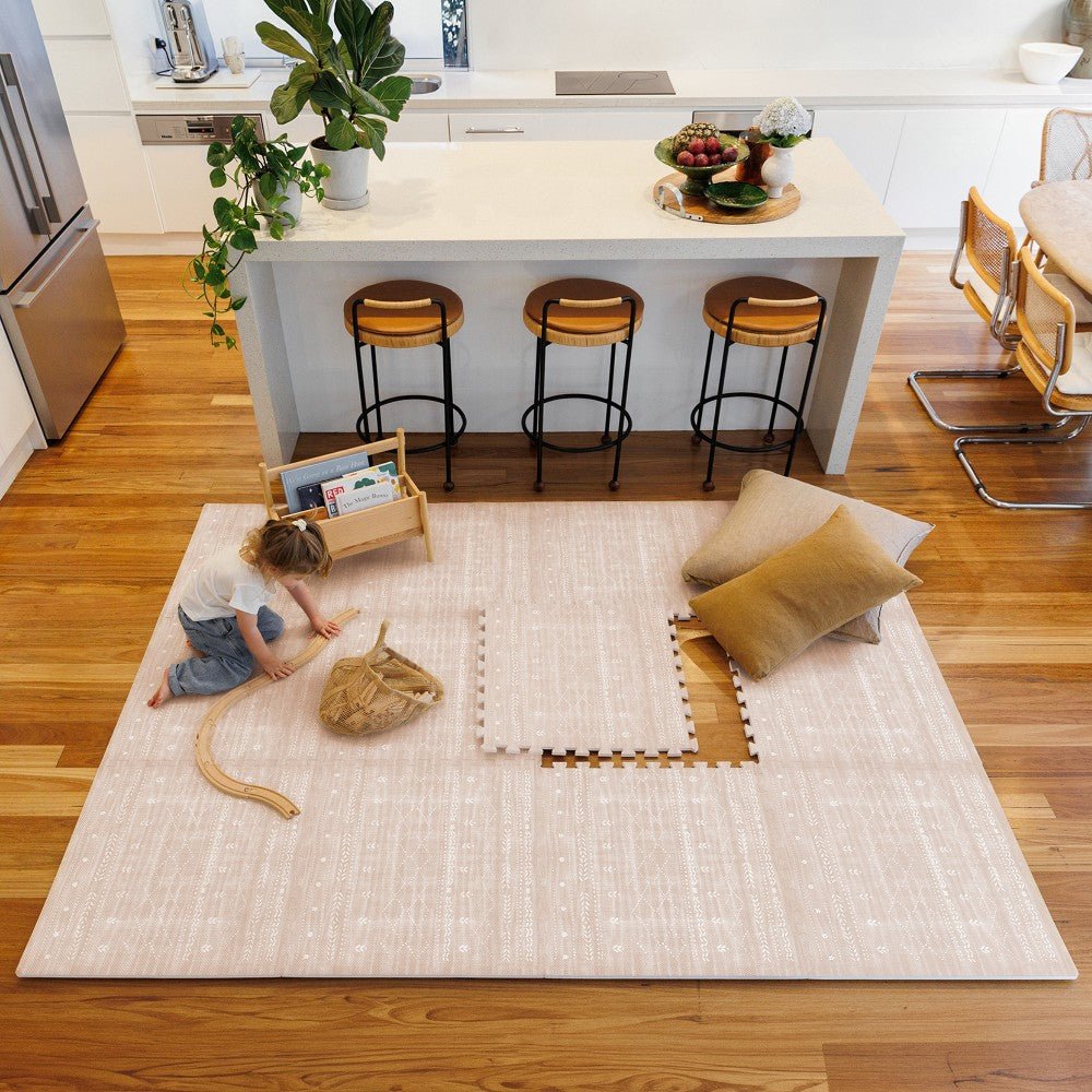 Lillefolk play mats blend Swedish minimalism, neutral tones, and traditional rug motifs to fit beautifully into your home.