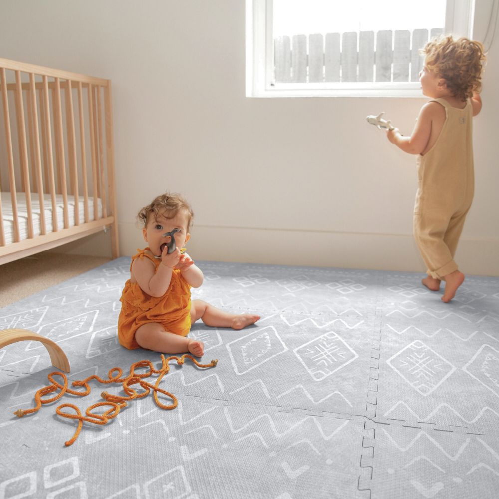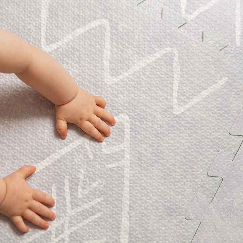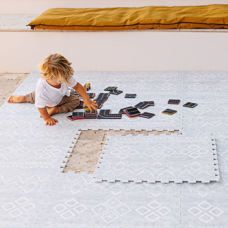 Elevate your home décor with our Gray Playmat, inspired by the intricate motifs of 1,200-year old Moroccan Berber rugs and the timeless sophistication of Scandinavian gray tones. It brings warmth and elegance to any room while offering a stylish, safe, and easy-to-clean play space for your little one.