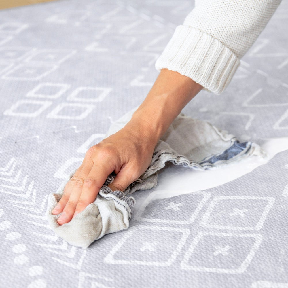 For regular cleaning, follow the same method with a damp cloth, soap, and water. If you clean the floor under your playmat, ensure it’s completely dry before placing the mat back, as trapped moisture could cause mold or mildew over time, potentially damaging your floor.
