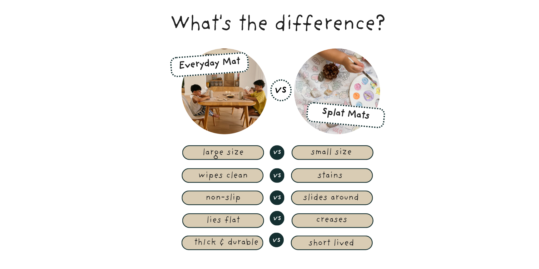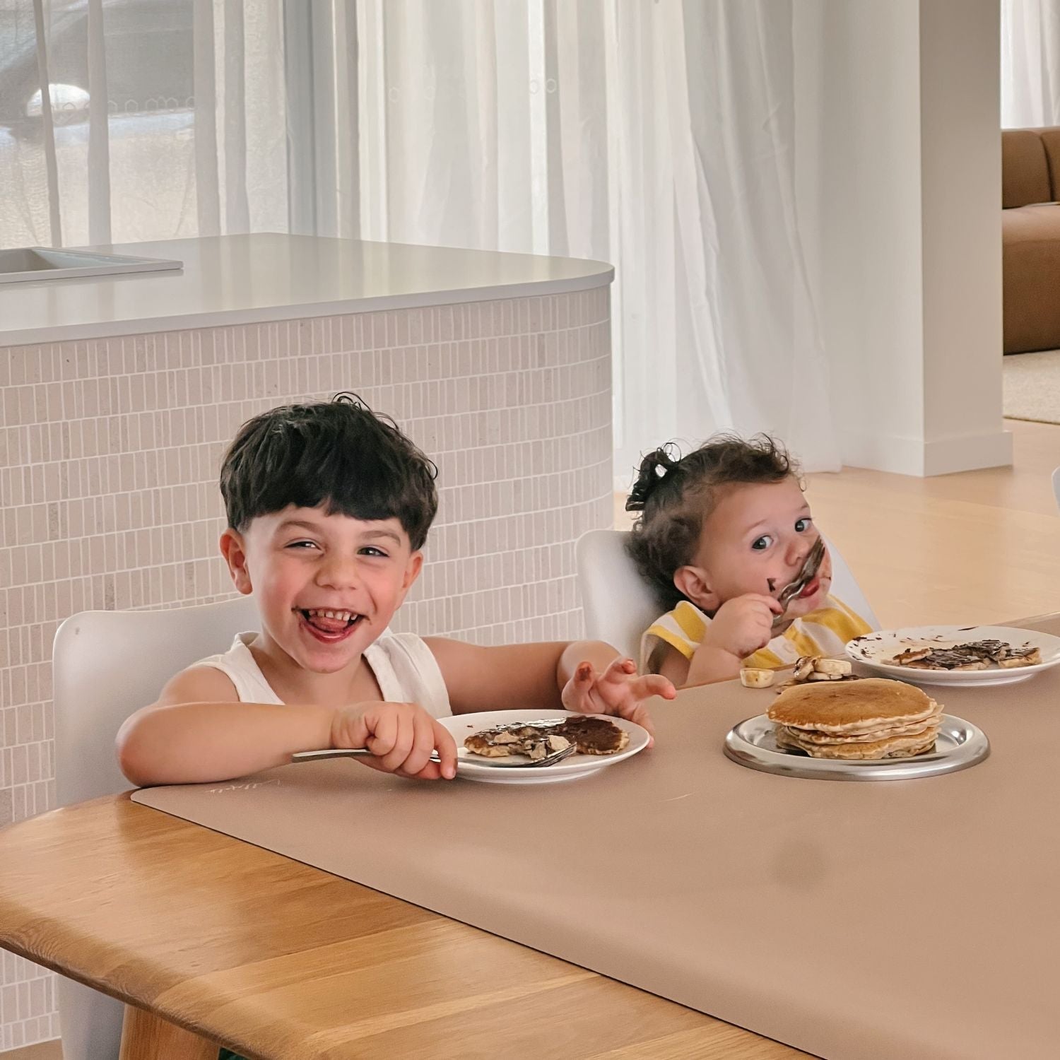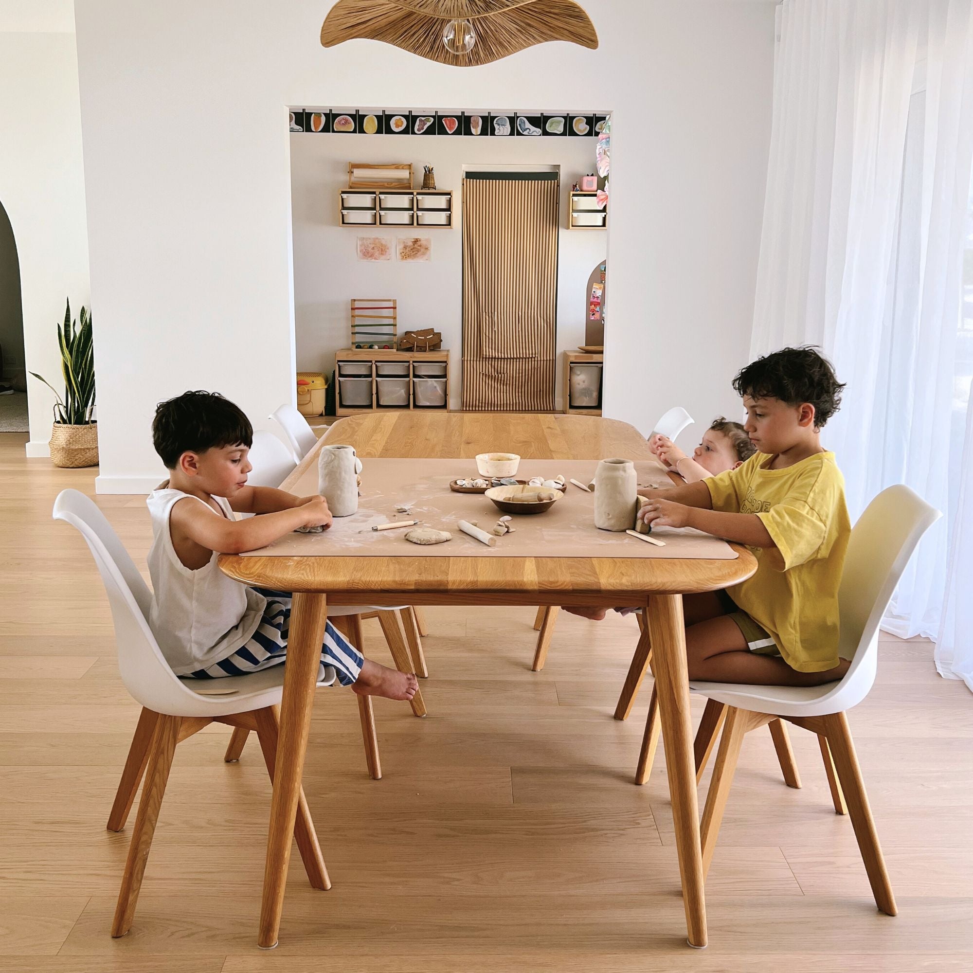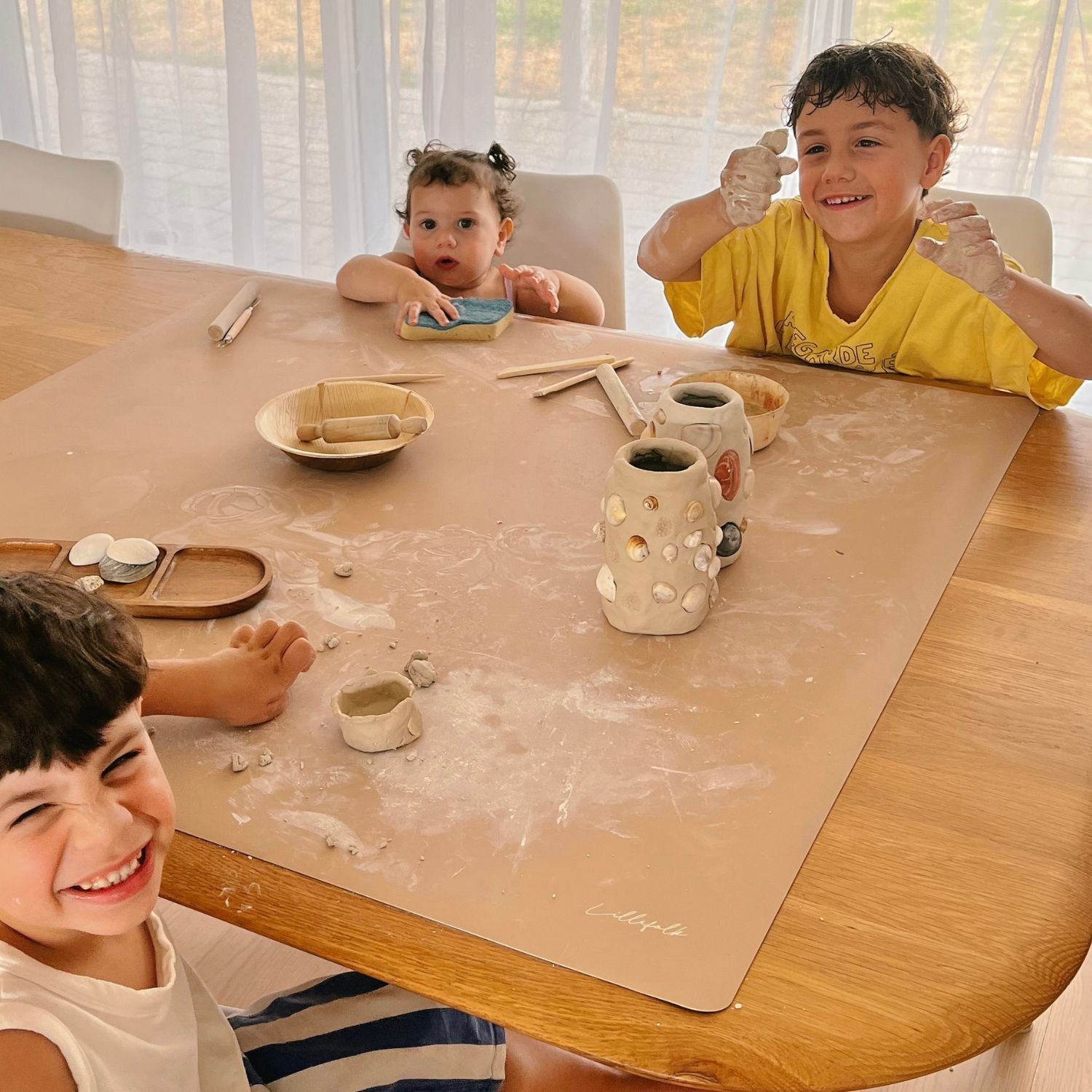 As mums, we wanted to say YES to creativity - painting, pasta, Play-Doh - but not the chaos that followed. Every mat we tried was too small, too flimsy, or slid around. Most were thin polyester or vegan leather, and none looked good in our homes.